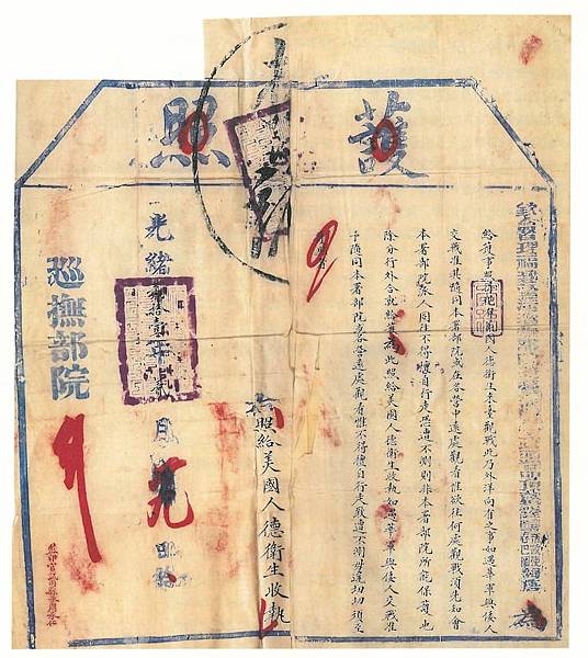 達飛聲(James W.Davidson)當時就有「記者採訪證」?美國記者Davidson以第三方觀點記錄台灣人民「竹篙湊菜刀」和日本正規軍對抗,大、小戰役不斷的情況,他的記者採訪證最先叫「護照」,後來變成「臨時從軍證」,最後成「從軍許可證」,;還有日軍接收臺灣時,徵召臺灣人支援後勤運輸,在新竹孔廟前聚集苦力聆聽日軍諭示。臺灣人民於洶湧的歷史浪潮中,為求生存而奮鬥的足跡,甲午戰爭後的台灣 翻轉1895-乙未之役120年檔案特展 https://bit.ly/3TvNw44