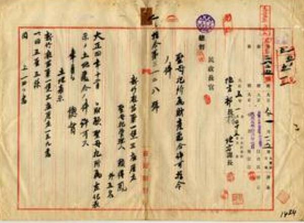 聖母祀管理人賴得鳳外五名聖母祀所屬財產處分許可-文化部國家文化記憶庫 https://bit.ly/4cnWuZT