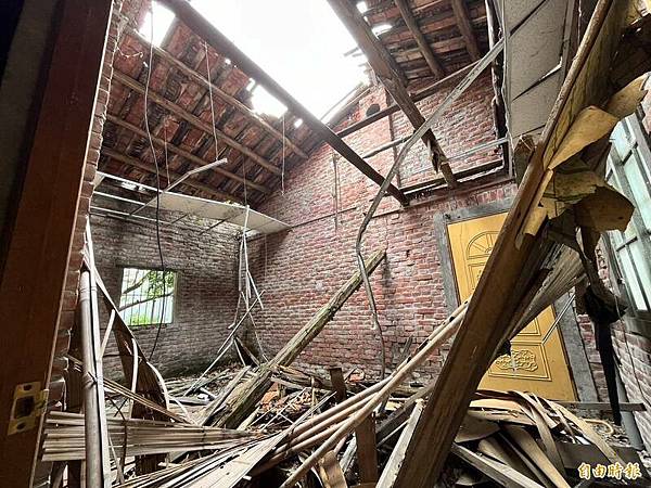 蔡蕥鍹指出,縣府5年前曾發下豪語要修復清河堂伙房,轉型為教育場所,2018年縣府依文資法第15條規定提報,經現勘決議具文資價值予以列冊追蹤,但文化局在2021年將清河堂解除列冊後,管理單位教育局竟任其荒廢淪為廢墟,屋頂已出現崩塌嚴重毀損,說好的教學場域全成了泡影。