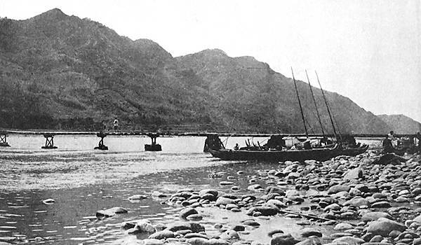 祭嶺登陸、本師直進於左、右田岩吉率愛