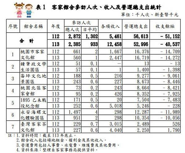 據客家局統計,去年多數館舍的總參訪人次,其實較前年增加1至4成,惟減少最多的為永安海螺文化體驗園區的3成6,是因前年辦世界客家博覽會,拉高參觀人數基期;入不敷出最嚴重為客家文化館,啟用逾20年,因設施老舊及人事維運成本偏高,去、前年皆短絀逾1400萬元。