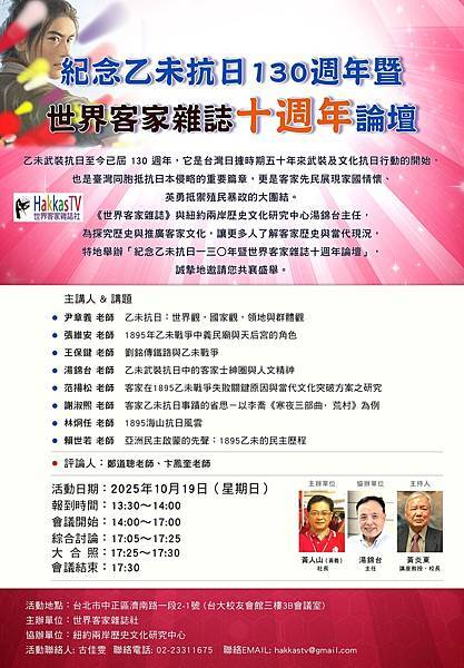 8月26日,位於桃園市中壢在地的中原大學主辦《韌性客庄研習營》的《乙未戰役記憶探索》座談,筆者受邀主講《乙未戰爭與客家精神》。隨後,桃園龍潭導覽協會理事長徐鳳園發表《乙未戰爭‧桃園四大戰役影響與展望》。