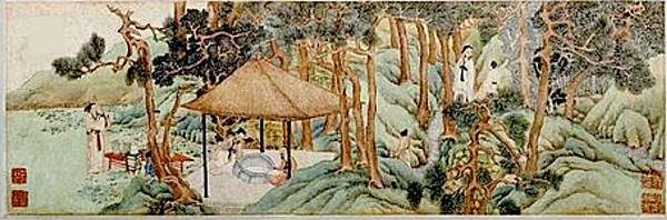 《惠山茶會圖》是明代畫家文徵明在正德十三年(1518年)年創作的一幅紙本設色畫,現收藏於北京故宮博物院。此畫為青綠重彩,有趙孟頫的風格特點,景色簡潔。畫面自右向左展開,山石層疊,松柏掩映,眾人或坐於泉亭之下,或列鼎煮茶,或山徑信步。人物形神兼備,儀態灑脱,與周圍的景色構成一個整體,既展現了暮春時節山林的幽深佳美,也反映了文人生活的閒雅情致。惠山茶會圖_百度百科 https://bit.ly/3vDtxbN