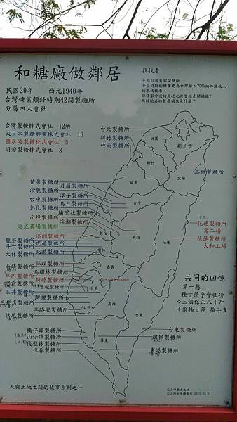 下拉至四大會社,按入想搜尋的會社後,會出現會社糖廠,再按入糖廠後,會有糖廠的資料介紹和照片喔!社與社是總督府的分類,祠是社分類的一種社號。因此:依據1943年出版的《臺灣に於ける神社及宗教》,位於各地製糖所、工場構內或與其相關的神社有2座,社則有19座