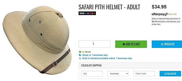 「沙伐利帽」,穿著一式的「非洲獵人裝」