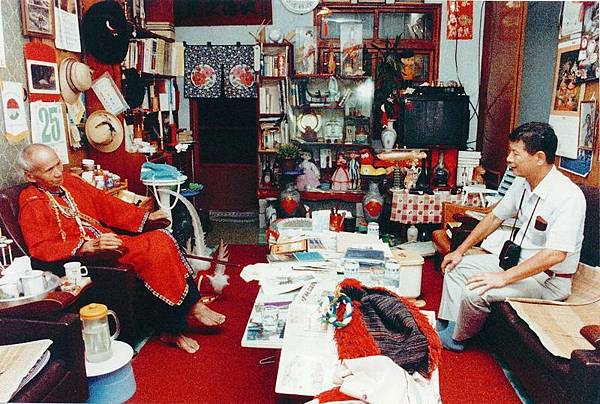 出乎意料的,托泰健壯得很,他換上阿美族的傳統禮服,頭戴羽飾讓劉燕明拍攝紀錄片(這一段紀錄片後來並未用上。)由於此行是以劉燕明的影片拍攝為主,並沒有太多時間訪問有關鹿野忠雄的事蹟,但是托泰從言談中看出我對鹿野忠雄博士的景仰與瞭解,高興之餘,很大方地借給我四本研究台灣山地部族的書,這些書都是一口子有盛名的當代日本學者,來台探訪托泰時送給他的。