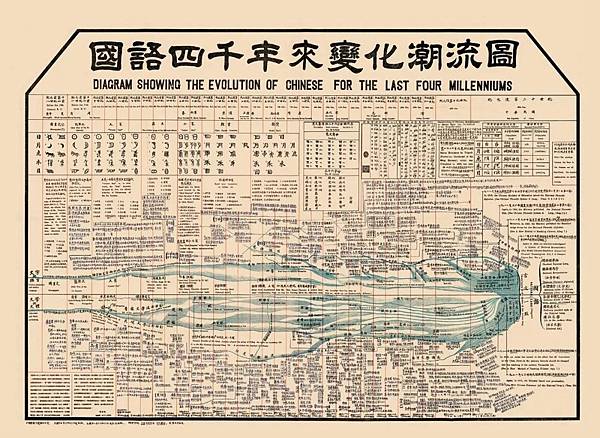 就是這張《國語四千年來變化潮流圖》(以下簡稱《潮流圖》)。 ps,文末我們會附上細部圖,有興趣的讀者不要錯過喔! !