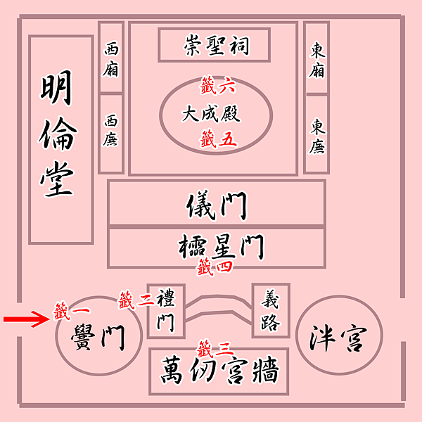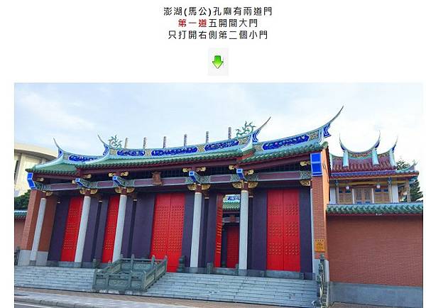 儀門又稱為大成門,乃為進入大成殿之主門。儀門面寬五開間,它的左右各又闢門,這種形制與曲阜孔廟相同。 儀門面寬五開間,它的左右各又闢門,這種形制與曲阜孔廟相同 https://is.gd/7UozsC