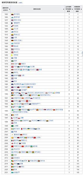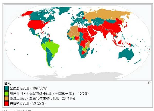 已廢除死刑國家 約139國 包括歐洲大多數國家、加拿大、澳洲、南非等先進民主法治國家。