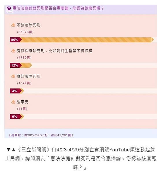 釋憲後民調!8成民眾支持死刑 時代力量:逾5成人民不滿政府犯罪預防 | 政治 | 三立新聞網 SETN.COM https://bit.ly/3Bd1Fh9
