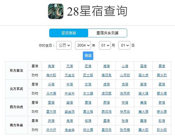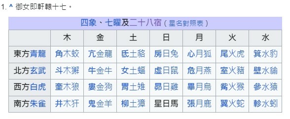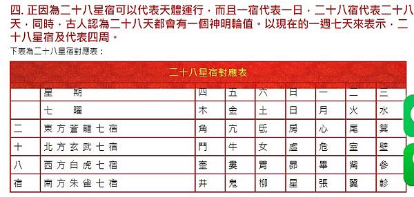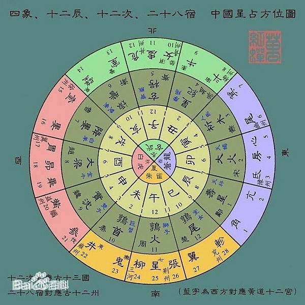 古代28星宿 比12星座更厲害-「二十八星宿」把黃道與天赤道附近的星辰,區分為二十八個星宿,又再分成四大星區,分別是東方青龍、北方玄武、西方白虎、南方朱雀,每個星區各有七個星宿,每個星宿也都有各自的吉凶與個性,可說是中國的十二星座占卜;對於喜愛占卜的民眾而言,可以依照本身的農曆生日對應天上的星宿,找出屬於自己的守護星