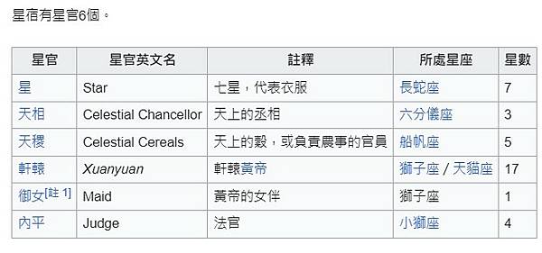 《步天歌》中星宿所轄除了七星和軒轅之外,還有三顆星組成的天相,是宰相大臣;四顆星組成的內平,是執法的官員;五顆星組成的天稷,代表農政之官。