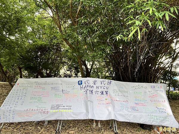 國立陽明交通大學校務基金管理委員會議與校務發展委員會議,通過位於竹北六家校區的客家學院興建商辦大樓案,引發反對師生群起反彈。(記者廖雪茹攝)