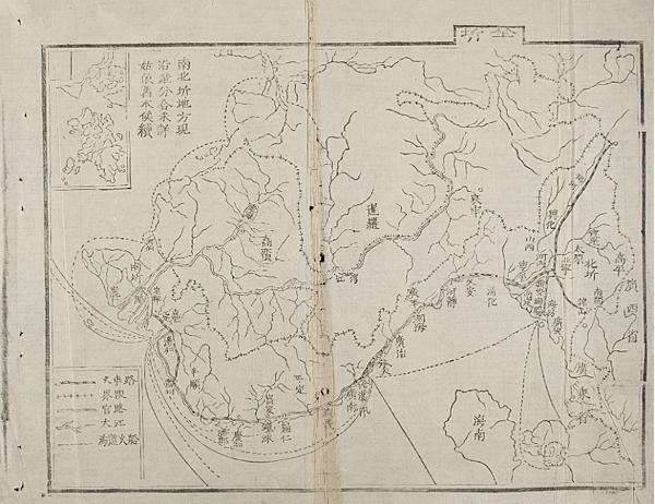 阮朝時期《大南一統志》所繪的越南疆域,右方為北方(Source: Cao Xuân Dục(高春育), Lưu Đức Xứng(劉德稱), Trần Xán(陳燦) / Public domain / via Wikimedia Commons)
