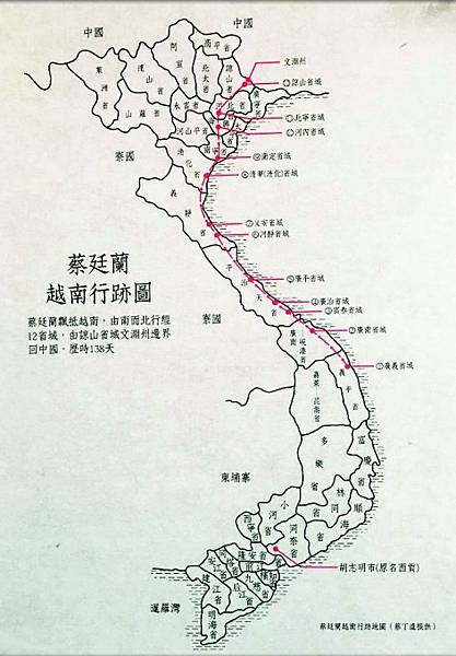 「從越南回澎湖有兩個選擇,一個是走海路,好處是距離短,但必須等到季節到了才能出發;一個則是走陸路,是可以立即啟程,但要走很久,必須先橫越越南國土一路走到福建,然後再搭船返回澎湖。對蔡廷蘭而言,這兩個選擇裡,他當然是希望能夠越快出發越好,於是毅然決然選擇了陸路」