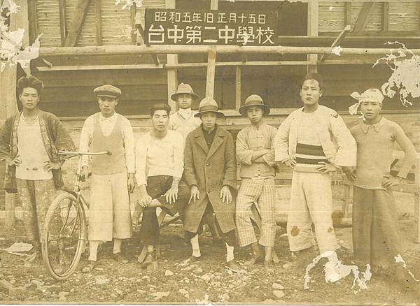 1922年(日治時期大正11年4月),臺中州立第二中學校設立於頂橋子頭(今興大附農現址),以收容日人子弟為主。本照片為1933年(昭和5年旧正月15日),為小正月意味著新年的結束新的一年開始,照片中左邊第一位穿著工作服,左邊寫佐佐木商店,右邊寫伐木百貨商,照片後方為正在施工新建的校舍,意味著小正月開工前的合影。