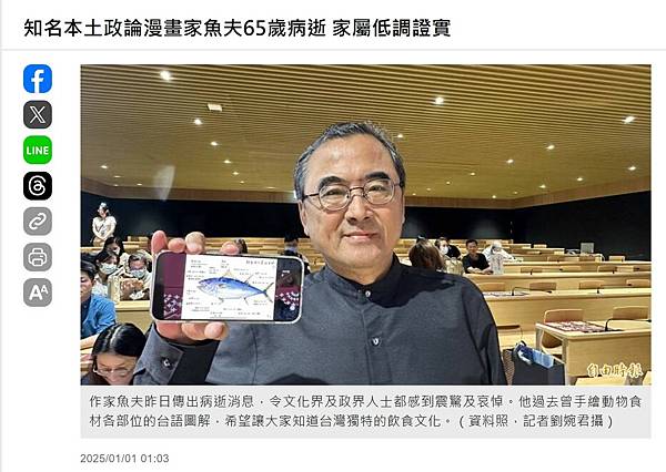 知名政論漫畫家魚夫驚傳病逝 享壽65歲 - 政治 - 中時新聞網 https://bit.ly/49XKNYM