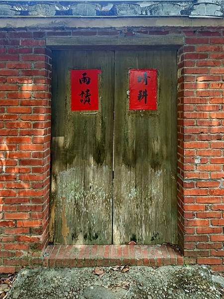 「德星衍慶」門牌寫著「平鎮鄉山子頂一號」,我想到梅鶴山莊是「頭寮一號」,這些都是天字第一號,門口圍牆有個美麗的弧形,地面是用鵝卵石鋪地的,代表著應該是地主或有錢人,所以家裡的前庭不用曬稻子,只要收租就可以了。
