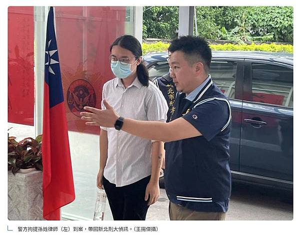 警方拘提孫姓律師(左)到案,帶回新北刑大偵訊。(王揚傑攝)