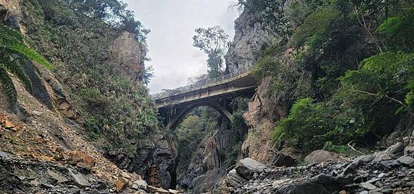 至於大觀橋因為人止關兩側為高聳山壁與溪谷,腹地不足,因此就直接在上游側加了一根大梁來拓寬,成為現在的樣子,「瀧溪」親自下至人止關的溪谷由下而上觀察,發現大觀橋根本就是現役狀態,持續肩負埔霧公路通行重擔,尤其每天還有不少的砂石車、大貨車、遊覽車等各式大車重壓,真的是老當益壯。