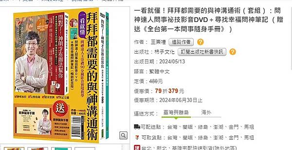 博客來-一看就懂!拜拜都需要的與神溝通術(套組):問神達人問事祕技影音DVD+尋找幸福問神筆記 (贈送《全台第一本問事隨身手冊》) https://bit.ly/44MqNpq