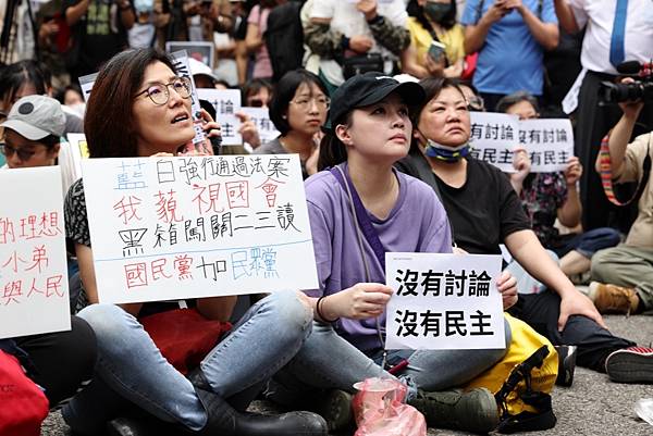 圖為多個公民團體21日於立法院外發起「國會濫權,民主倒退,公民搶救,立院集結」行動。(資料照)