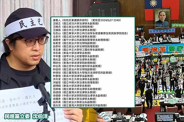 台灣公私立大學、中研院逾80名法律學者連署聲明 呼籲國會五法退回委員會討論 | Taiwan News | May. 28, 2024 09:11