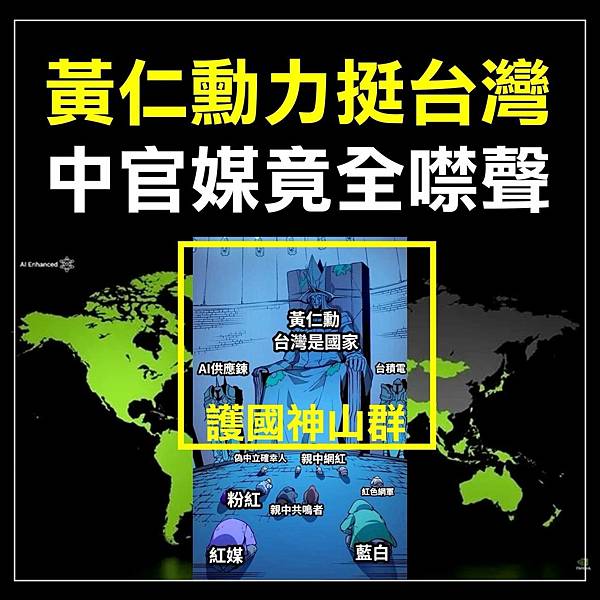 「傑出移民,傑出美國人」(Great Immigrants Great Americans」,總計24 名菁英,分別來自 16 個國家(countries),輝達CEO黃仁勳也入榜,同時註明黃仁勳出生於台灣-「而且是country喔」不是ROC,ROC 已經滅亡了」。 https://bit.ly/3xDtuhc