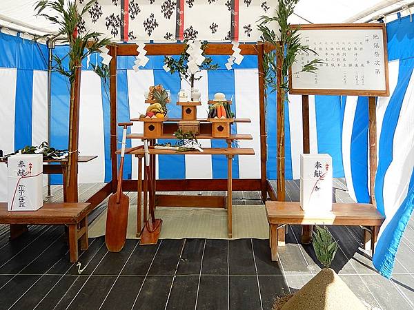 所謂的「地鎮祭」,是日本在建築工事破土動工之前,所進行的傳統神道教祭祀儀式。這種開工儀式的目的是凈化土地,祓除不潔淨的東西,更對神的恩惠表示感謝與崇敬,希望在眾神的照覽與守護下,祈禱工程的平安竣工,土地和建築物都能安全,堅固。