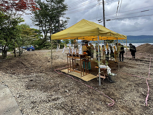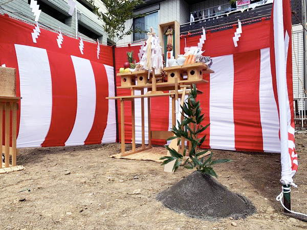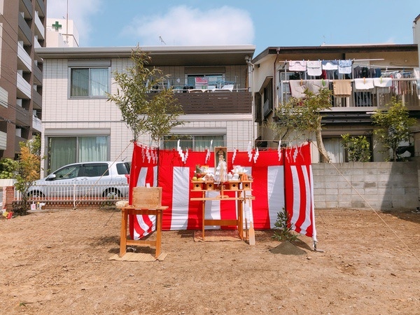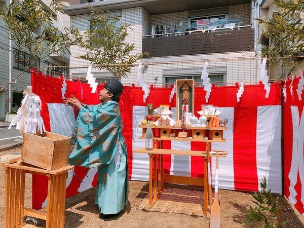奠基儀式是房屋動工前舉行的儀式,自古以來都是作為向守護土地的神祈求使用土地和祈求建築工程安全的儀式而舉行的。 「在要建造房屋的土地的四個角落豎起青竹,用注繩圍成節日場地,業主和施工人員參加了奠基儀式。奠基儀式由以下公司贊助:建築公司,但業主選擇不舉行奠基儀式邀請牧師是很常見的,但也有以更簡單的方式進行的情況,業主只是撒鹽。