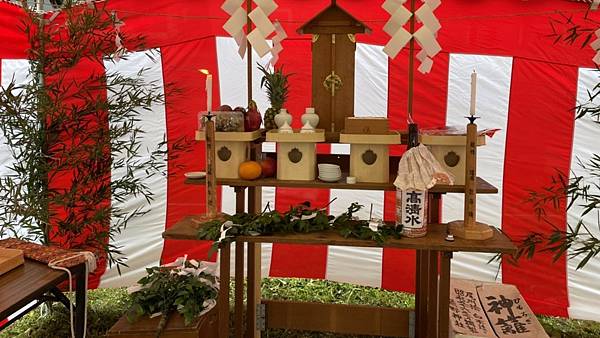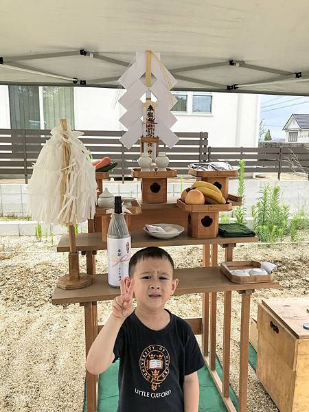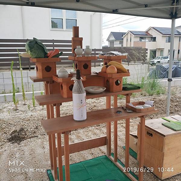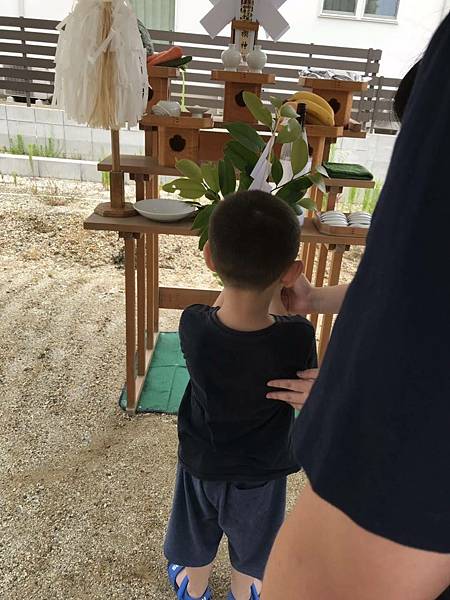 今日在即將開工建房的土地上,建築公司請來神社的神職人,花了大約一個小時的時間,幫助我們完成了 地鎮祭的儀式。