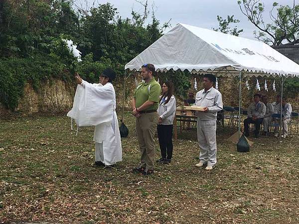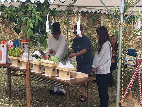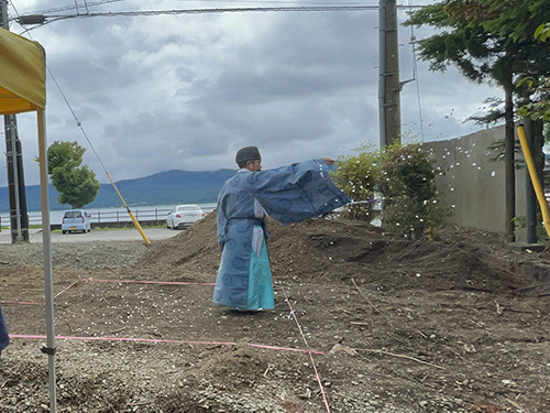 神主為了祈求工程順利,向土地之神奏上祝詞。