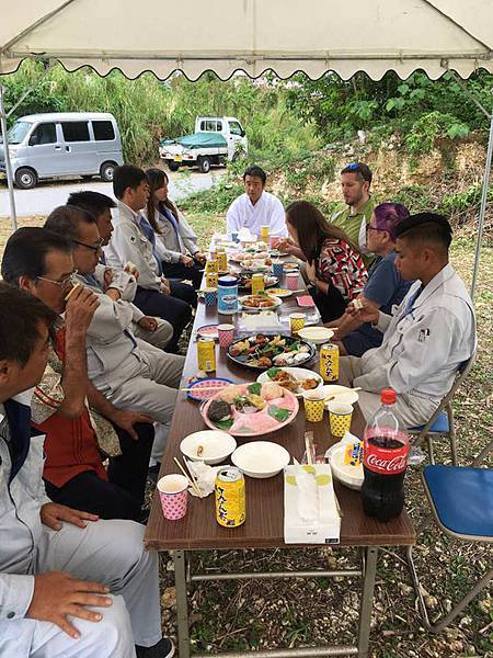 之後儀式順利舉行,神職人帶著我們在土地建房的東南西北各個方向上把祭拜後的食鹽和淨米,還有清酒灑在地面上。