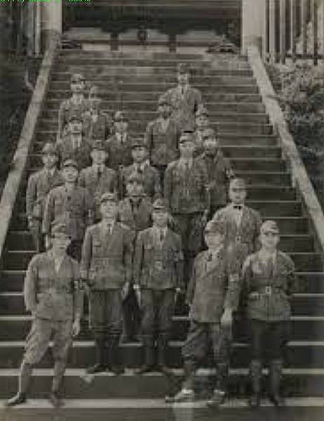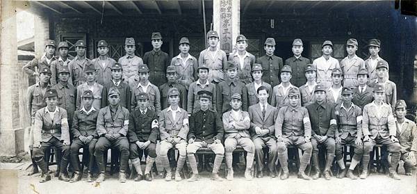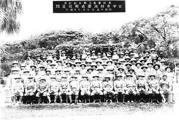 昭和12(1937)年7月7日盧溝橋事變發生。至昭和15(1940)年7月7日三週年,臺中市防衛團直轄救護班集全體團員照相記念。