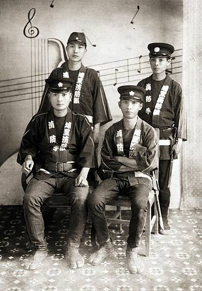 照片為鶯歌庄防衛團成員在防衛團本部合照,防衛團本部為發布命令及指揮之地,各街庄除設立本部外,規模大者甚至有組織多達13班。照片中第一排中間為庄長蔀辰太郎,最後一排右三為張福祿。