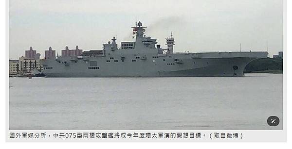 國外軍媒分析,中共075型兩棲攻擊艦將成今年度環太軍演的假想目標
