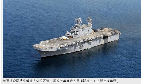 每次軍演選擇的「靶艦」種類和重量級別都不盡相同。今年環太軍演的「擊沉」演習目標,將是已退役的4萬噸級「塔拉瓦號」(Tarawa)兩棲攻擊艦。
