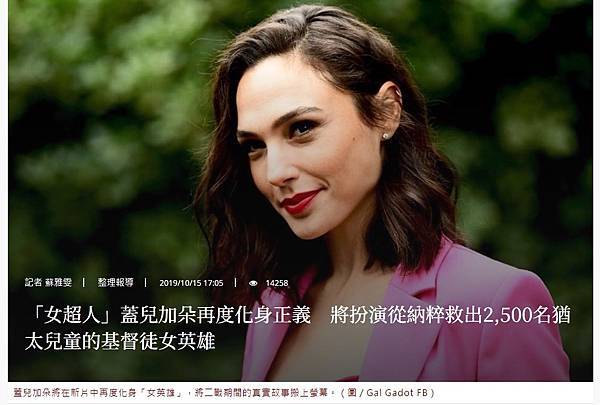 「女超人」蓋兒加朵再度化身正義 將扮演從納粹救出2,500名猶太兒童的基督徒女英雄 https://bit.ly/4eqiUKL