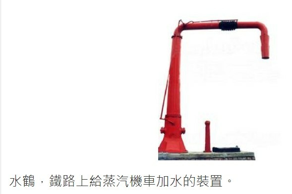 水鶴:水鶴,鐵路上給蒸汽機車加水的裝置。基本信息名稱:水鶴 -百科知識中文網
