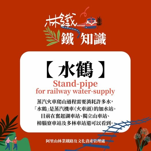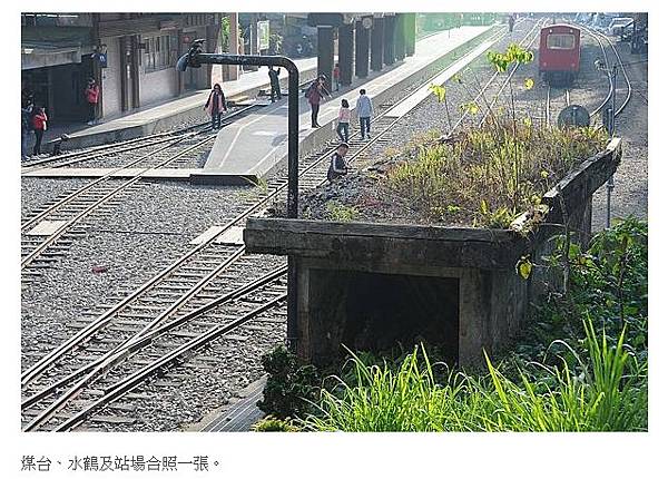 淡水「火車吃水」的由來: 淡水「火車吃水」是我少年期,對鐵路深刻的印象。 民國44年9月下旬基隆「正濱國民小學」三年級小學生,隨父親調差臺北石牌,因而遷到淡水鎮中正路老街尾,開始與「臺北-淡水線鐵路‧蒸氣火車」的緣份。 「蒸氣火車」顧名思義,是一種火車頭,以水蒸氣來推動巨輪的機關車頭,車頭鍋爐內的水箱經過煤炭燃燒的熱力,產生巨大熱水氣動力,機關車頭始以老母雞帶領著小雞的姿態,牽引車廂來回於鐵軌上奔跑。 火車有著動能才能進行兩地穿梭與交通,牽引動力的持續必須仰賴燃煤與水源充份的供應。 淡水是昔日「淡水線鐵路」終點站,火車到達淡水站後,機關車頭必需調回頭才能再行安全的牽引車廂「往返臺北站」的任務,逢迎調頭之際,火車頭的水箱即可以就位於鐵道邊附設之水塔進行加水〈裝卸平臺正對面〉;因而有「火車一邊冒煙、一邊吃水」的風景在此地出現。 此張照片係淡水張鑽傳醫師於民國45年拍攝〈農曆2月初迎神活動〉。https://www.facebook.com/share/p/Q5G3teVJ4eMagBri/?mibextid=xfxF2i (民國60年以前),在湖口度寒暑假時,因為阿婆家住在平交道傍邊,每天清晨,蒸氣火車一定會發出‘’嗚嗚聲‘’,準時叫我們起床,因為湖口火車站附近,就有蒸氣火車的加水和煤炭的地方,最讓我印像深刻的地方,常常在平交道看火車經過時,看到柴電拉列車,後面一定加掛蒸氣火車