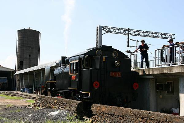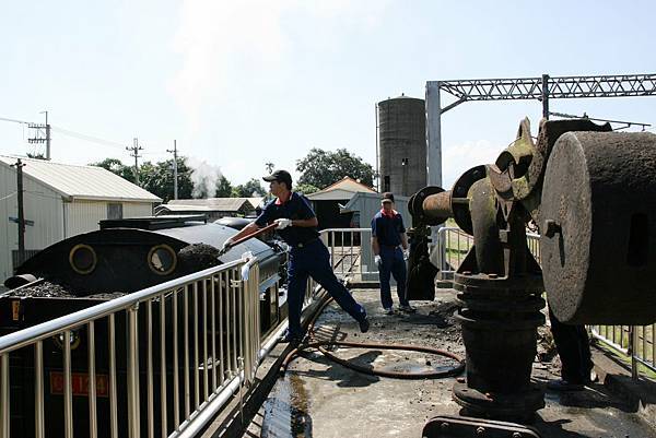 加煤台上還有一座「水鶴」,長長的水喉專門替火車頭加水,因樣子長得像鶴的長脖子,因此日本人稱之為「水鶴」。可別看它黑黑長長的其貌不揚,它來頭可大了,走遍全台灣要找到保存這麼完整的「水鶴」,可難了!所以一些鐵道迷可視之至寶般珍惜!