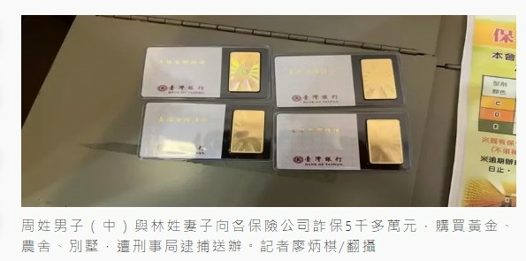 周姓夫妻檔超級會理財,拿到理賠金後不僅購買台灣銀行出品的金鑽一台兩條塊多達260條,高檔燕窩110盒,光是金條市價就要2400萬元新台幣、燕窩市值超過新台幣550萬元,周男並拿2千萬的詐保贓款到花蓮縣購買農舍、別墅和農地,夫妻倆10多年無業卻過著優渥的退休生活。
