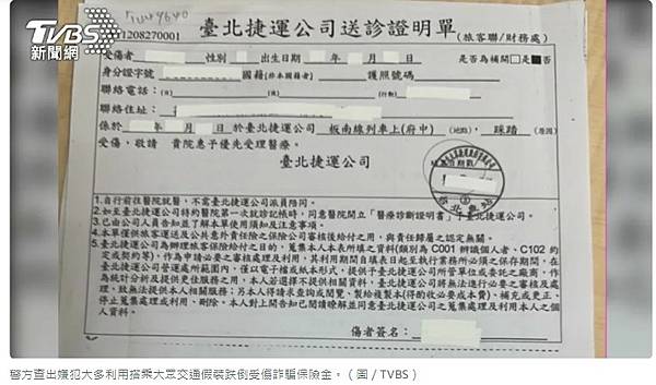 周姓夫妻總是在捷運、公車趁煞車時假裝跌倒受傷,並申請單據請領保險。圖為北捷的證明單。(翻攝畫面)
