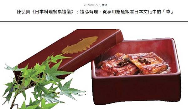 陳弘美《日本料理餐桌禮儀》:禮必有理,從享用鰻魚飯看日本文化中的「粋」 - TNL The News Lens 關鍵評論網 https://bit.ly/3xhLCwY