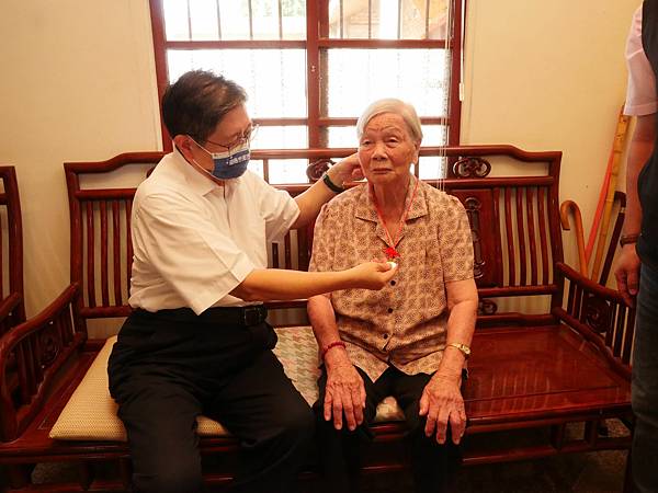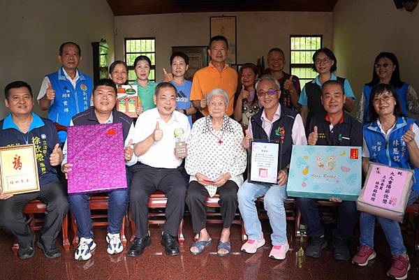 慶祝九九重陽節,新竹縣長楊文科自本月13日起接連拜訪縣內百歲人瑞,昨(16日)前往北埔鄉拜訪6名人瑞,並致贈敬老禮品、敬老狀與金鎖片,楊文科親自為長者們戴上金鎖片,祝福他們健康快樂。