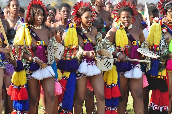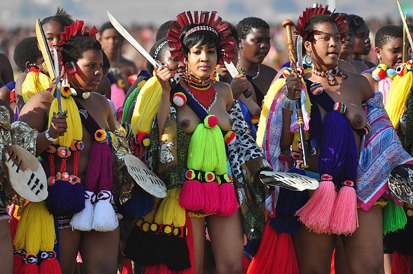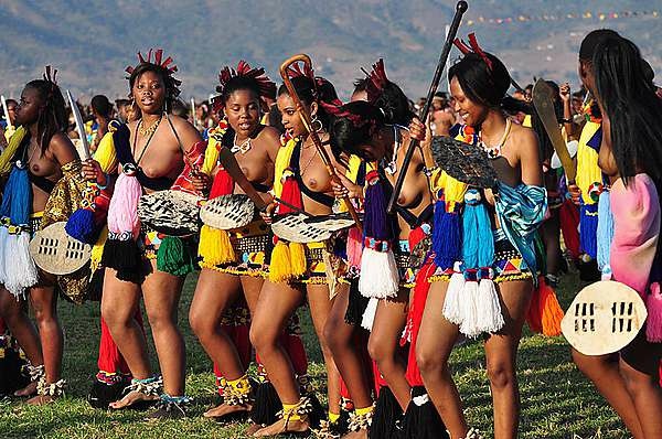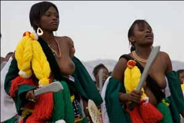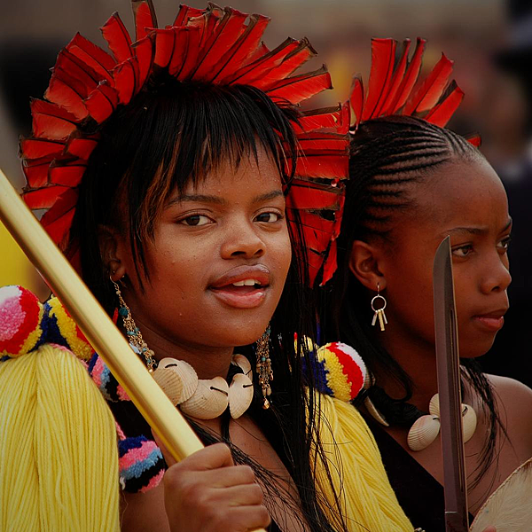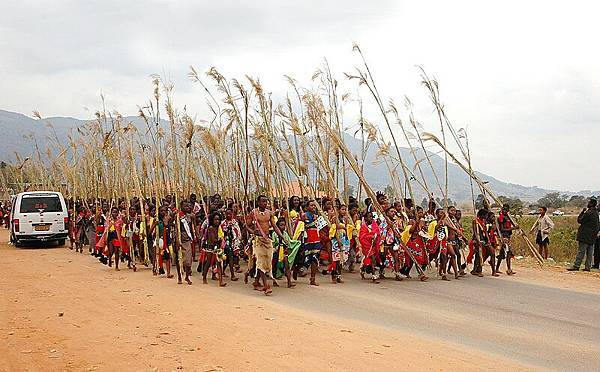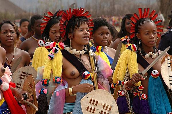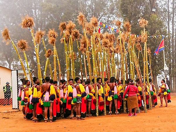 姆斯瓦蒂三世長女西卡尼索·德拉米尼公主參加蘆葦舞祭典,頭上的紅羽冠代表公主身份