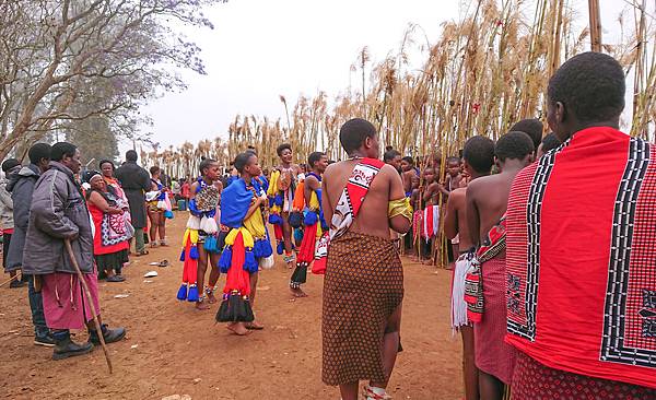 隔天用過早餐後,女孩們開始著裝打扮。傳統服裝包括有:ligcebesha,由史國國旗顏色的珠子製成;umgaco,從左肩披戴至右臀部,有著美麗花邊與彩珠;indlamu,帶著彩珠小短裙;emafahlawane,用在附加於褐色短襪上;umcwasho,裝飾頭部的穗花,其有各種顏色分別代表不同身份:藍色代表兒童、黃色是青少女,紅色則表示成熟婦女。而梳妝打扮完,她們便帶著自己摘採的蘆葦前往皇家村(王太后的出身地)。