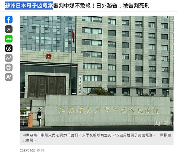 蘇州日本母子凶殺案審判中媒不敢報!日外務省:被告判死刑 - 國際 - 自由時報電子報