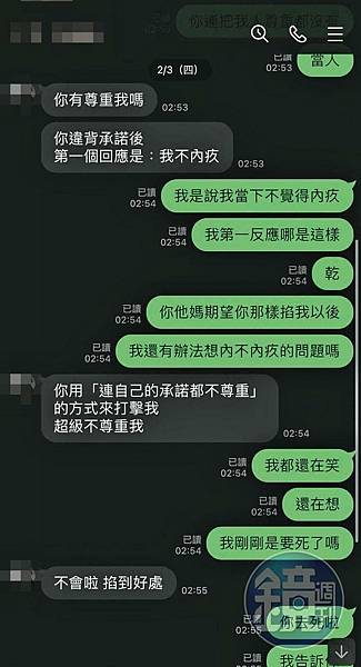 A女事後怒控被掐子時一度以為自己要死了,陳嘉義卻還戲謔回應「不會啦,掐到好處」。(讀者提供)