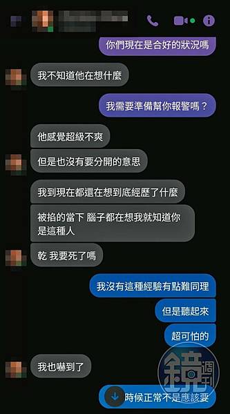 A女被陳嘉義掐脖子後,和朋友抱怨訴苦。(讀者提供)
